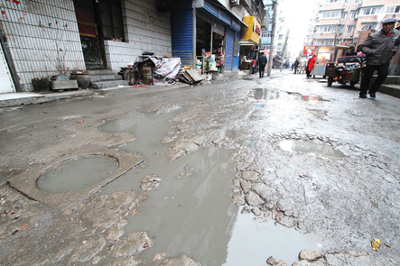 昨天,記者來到位于四季陽光小區(qū)西門外的這條支路,看到道路破損確實(shí)嚴(yán)重,沒走上幾步就出現(xiàn)一個(gè)大坑,有的坑中積滿了臟水,有的坑中填了些碎煤渣,巷子旁的一家幼兒園門前,幾只雞不停地啄著坑里的土。“這條‘鬧心路’,下雨天不知道滑倒了多少人。”長(zhǎng)年在路口擺地?cái)傎u些小雜貨的秦大媽說。 “這條路連著土鍋一條街和涂山路,是一條老路,曾經(jīng)叫南崗二路,每天有數(shù)萬人經(jīng)過這里。”高大姐在這條路上開了8年的小賣部,小店里常備一把手電筒,就怕夜里摔倒,她說最怕下雨天,“一下雨我就發(fā)愁,積水坑接二連三,顧客來買點(diǎn)東西還要蹚著泥水過,誰愿意來呢!經(jīng)常走這條路的周邊群眾都盼著能夠盡早修一修。