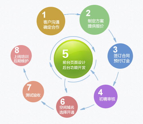 網(wǎng)站建設(shè)流程概述:客戶溝通,確定合作意向→制定建設(shè)方案,提供報(bào)價(jià)→簽訂合同,預(yù)付定金→初稿審核→前臺(tái)頁(yè)面設(shè)計(jì),后臺(tái)程序開發(fā)→空間及域名選擇、開通→測(cè)試驗(yàn)收→上線培訓(xùn),后期維護(hù)